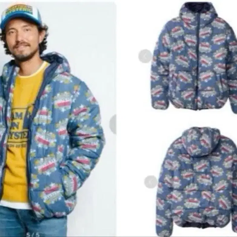 택 포함 SUPER HYSTERIC 패턴 데님 후디드 블루종