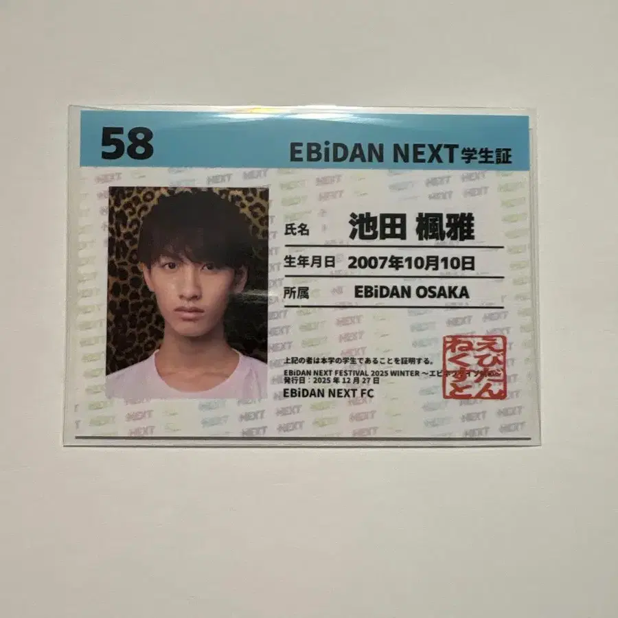 EBiDAN NEXT 학생증 이케다 후가 트레이딩 카드
