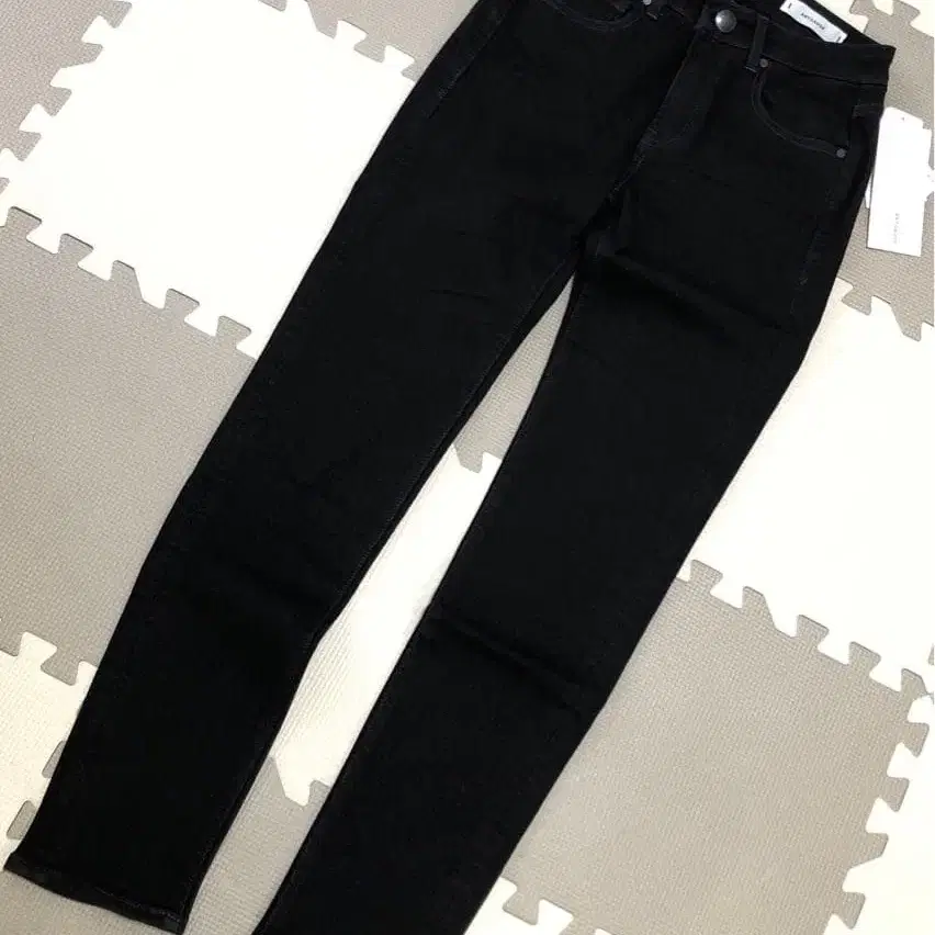 슬림 핏의 블랙 스키니 데님, 스타일리시하고 코디하기 쉬운 디자인.