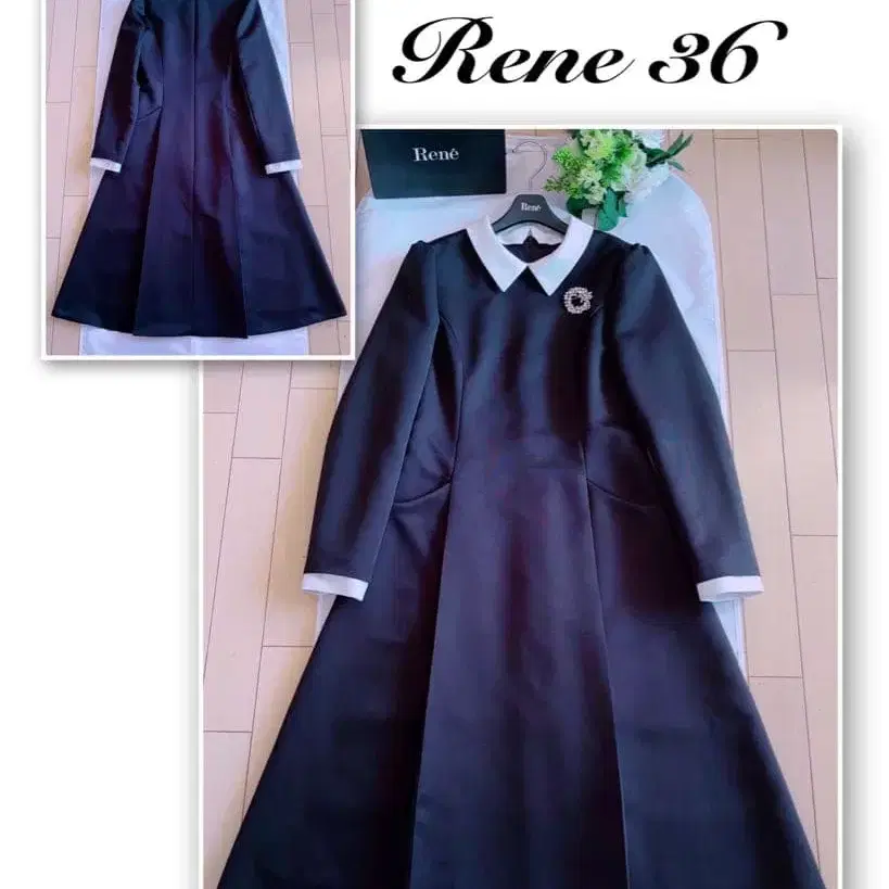Rene 화이트 카라, 카프스 긴팔 원피스 36 새상품급 foxey