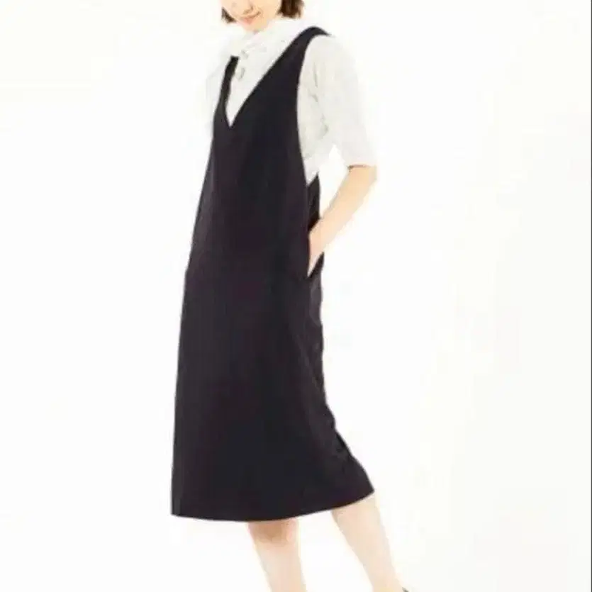 오버롤 스커트는 밑단으로 갈수록 자연스럽게 떨어지는 실루엣과 깊은 V넥으로 클래식한 인상을 주면서, 백 크로스 디자인으로 뒷모습에 신선한 표정을 더했습니다.