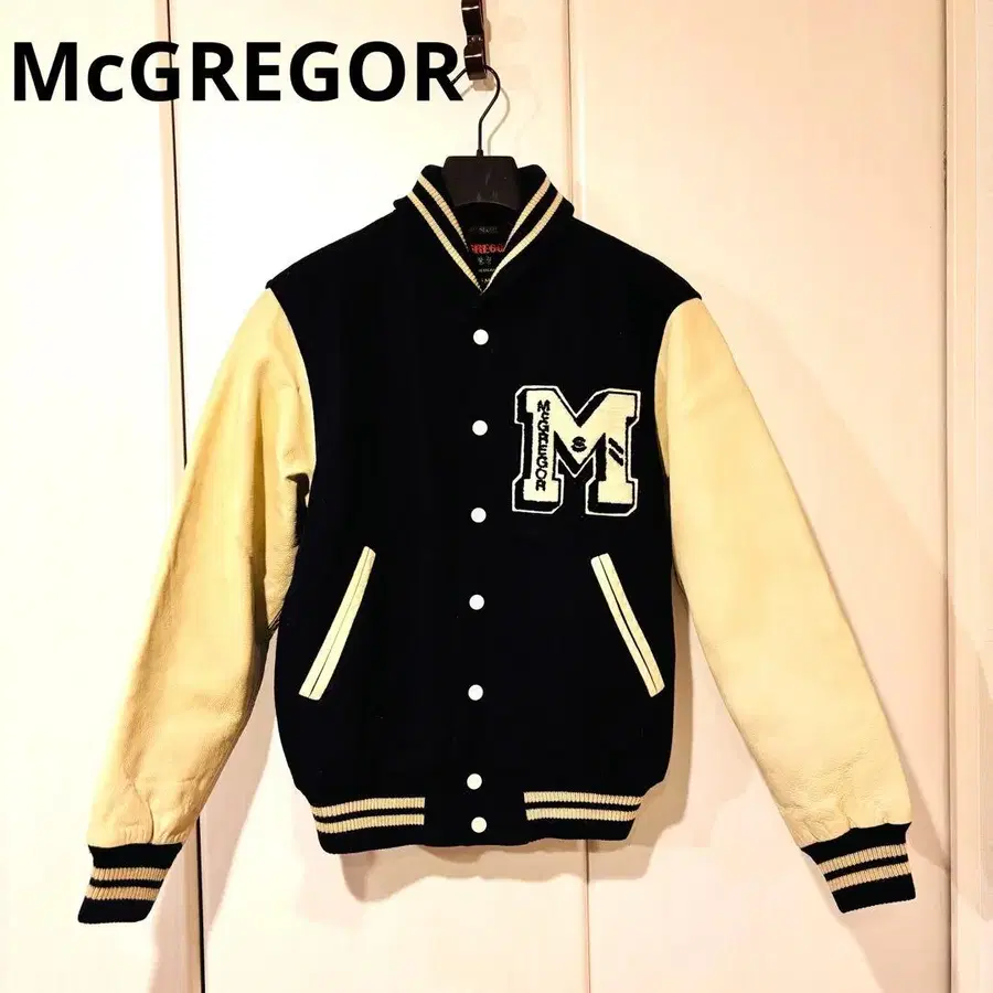 맥레거 바시티 자켓 네이비 아이보리 M 자수 소매 가죽