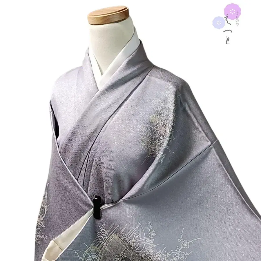 42년산 순수 실크 이중 기모노, 보라색, 츠케사게, 꽃무늬