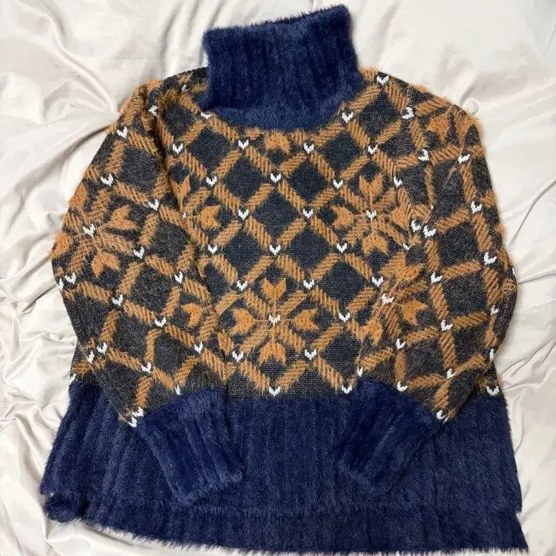 &Love 스웨터 M 스트레이트얀 페더얀 하이넥