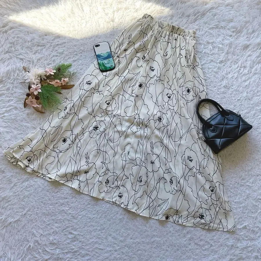 선화 터치의 꽃무늬가 인상적인 롱 스커트입니다.