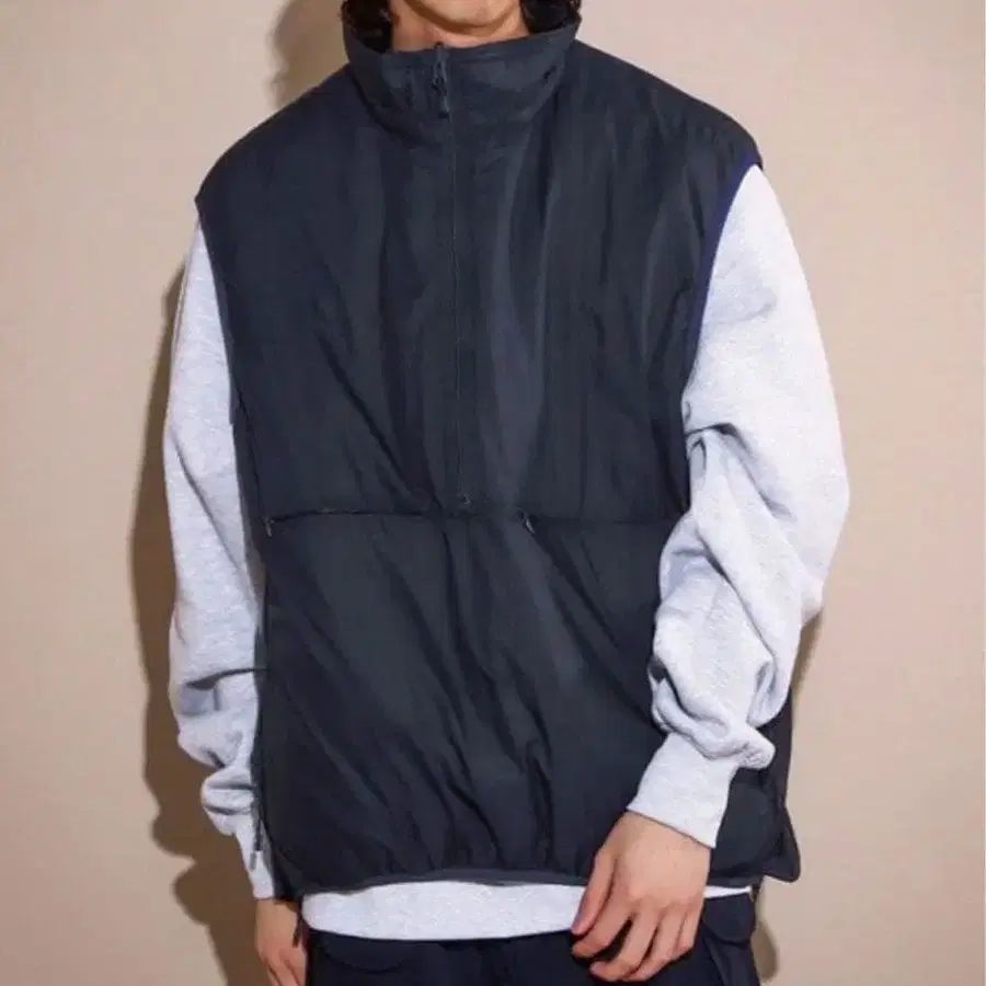 리버서블 사양으로, 컬러링과 2톤으로 되어 있습니다. 입고 벗는 것은 사이드 지퍼를 사용하면 쉽게 할 수 있습니다. 지퍼를 열어 실루엣을 바꿀 수 있는 점이나 코트 위에도 입을 수 있는 점이 스타일링에 폭넓은 활용성을 더해줍니다.