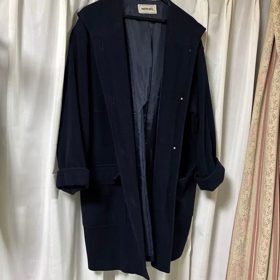 온워드 카시야마 네이비 후드 부착 울 코트 L 사이즈