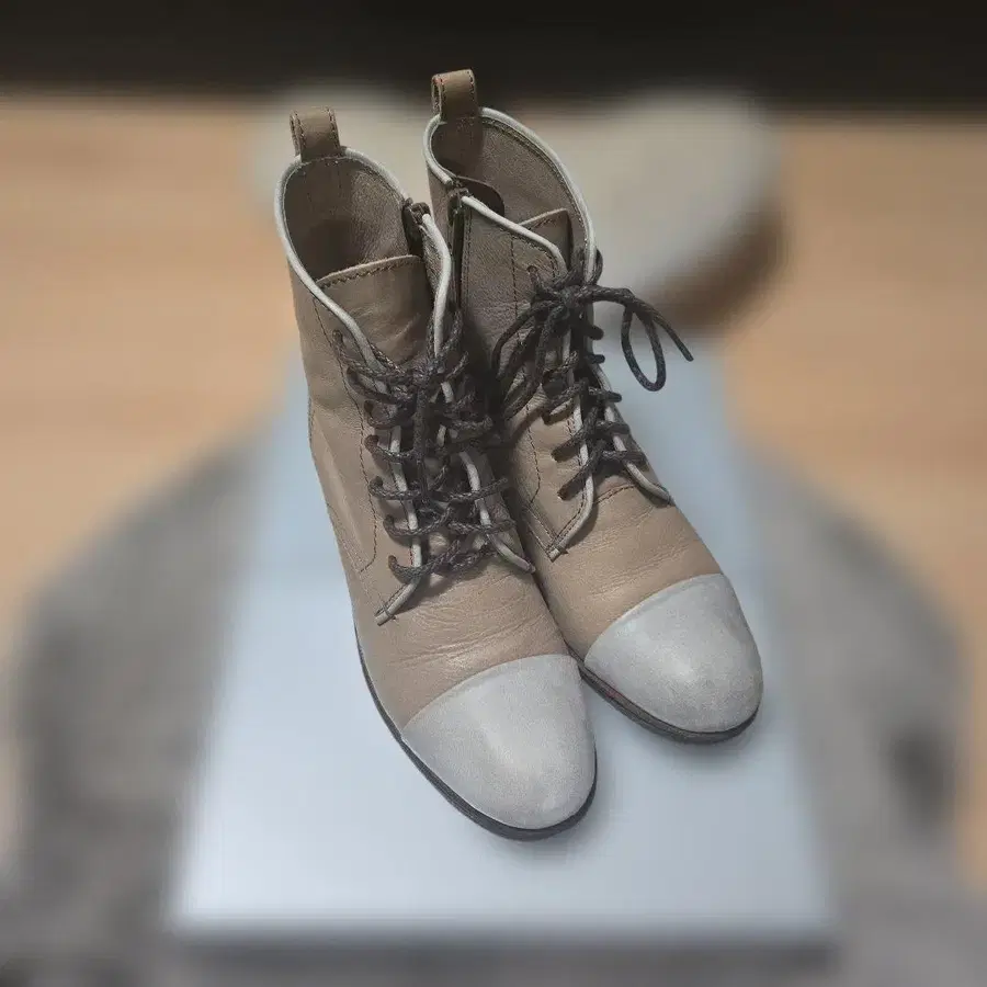 ing 사이즈 지퍼 달린 레이스업 부츠