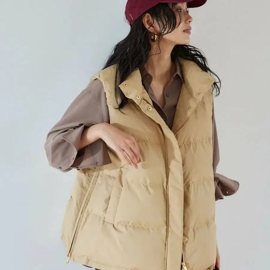 베이지 퀼팅 다운 베스트 M 사이즈 (추정)