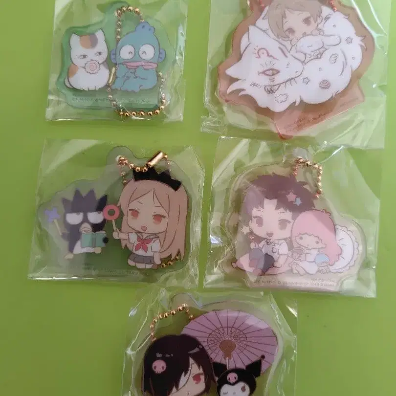 나츠메 우인장 산리오 캐릭터즈 콜라보 아크릴 키링 2종 5개 세트