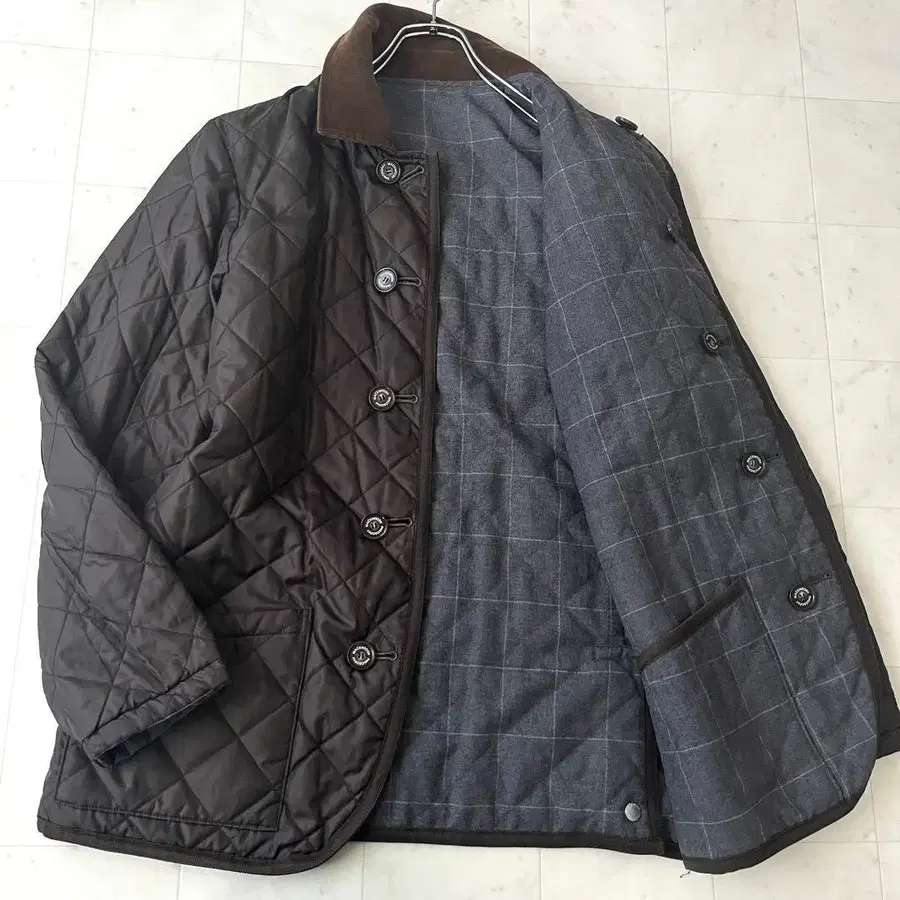 리버서블 퀼팅 자켓 체크