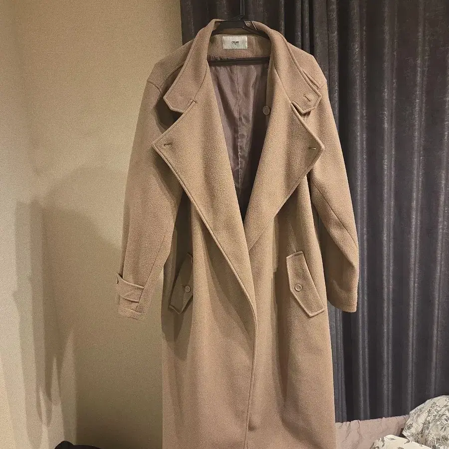 CREARE 베이지 더블 브레스트 롱 코트