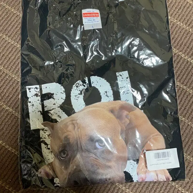 ROI 프린트가 특징인 블랙 T셔츠. - 브랜드: United Athle - 모델: 5942-01 - 사이즈: L - 디자인: 강아지 프린트 - 색상: 블랙 방문해 주셔서 감사합니다. 호리구치 쿄지의 반려견 ROI가 프린트된 T셔츠입니다. 미개봉 새상품입니다. 사이즈 - L
