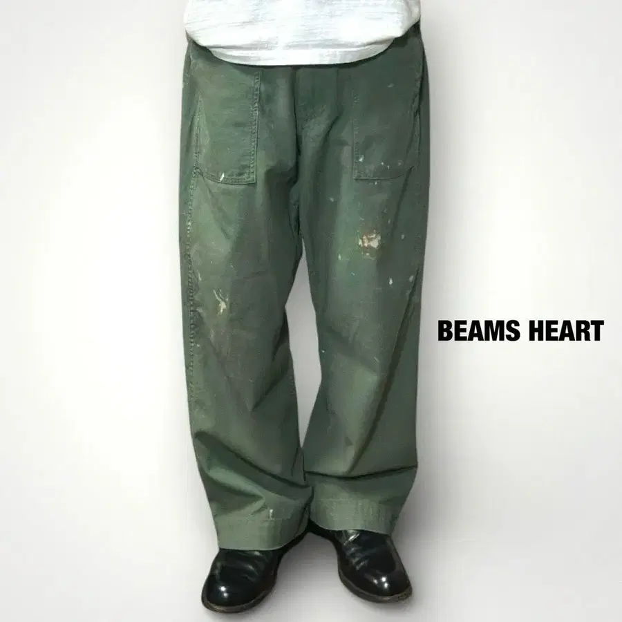 BEAMS HEART 베이커 팬츠 퍼티그 페인트 페인트 원포인트