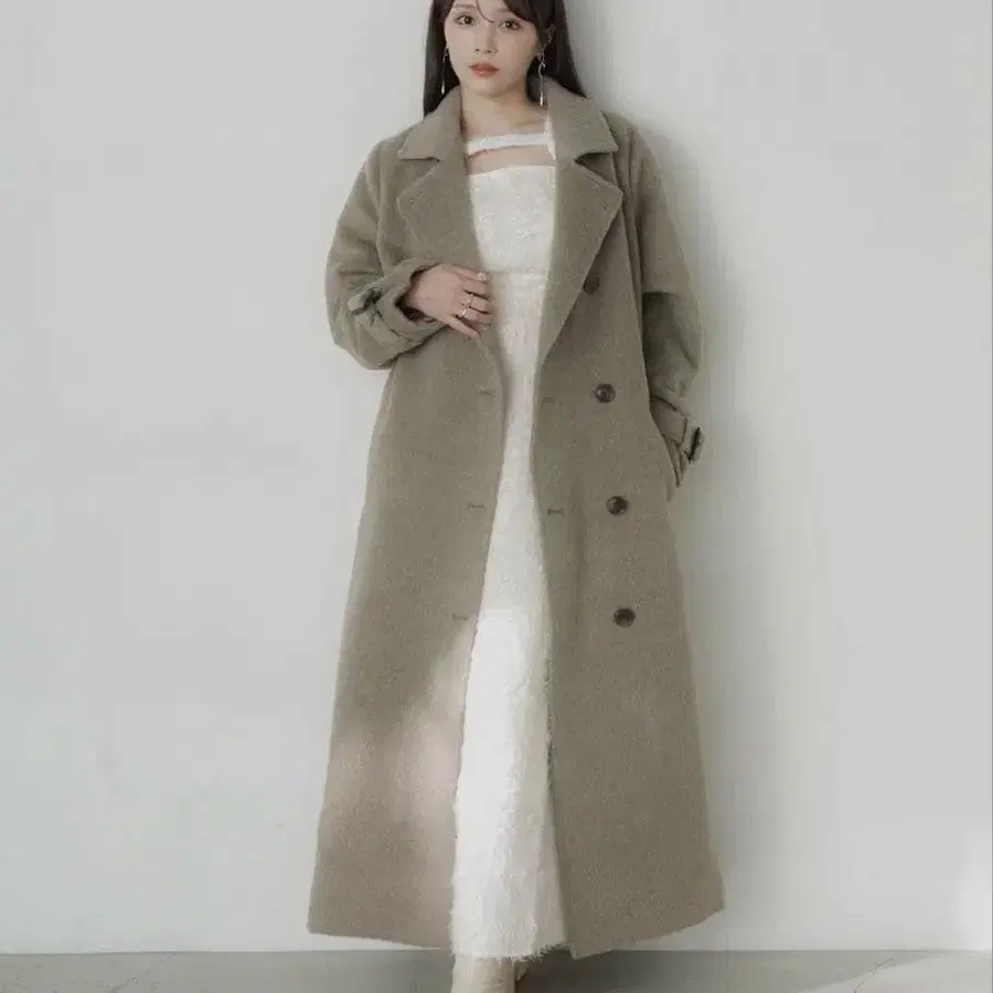 Elishe 2WAY 샤기 스탠드 카라 코트 브라운