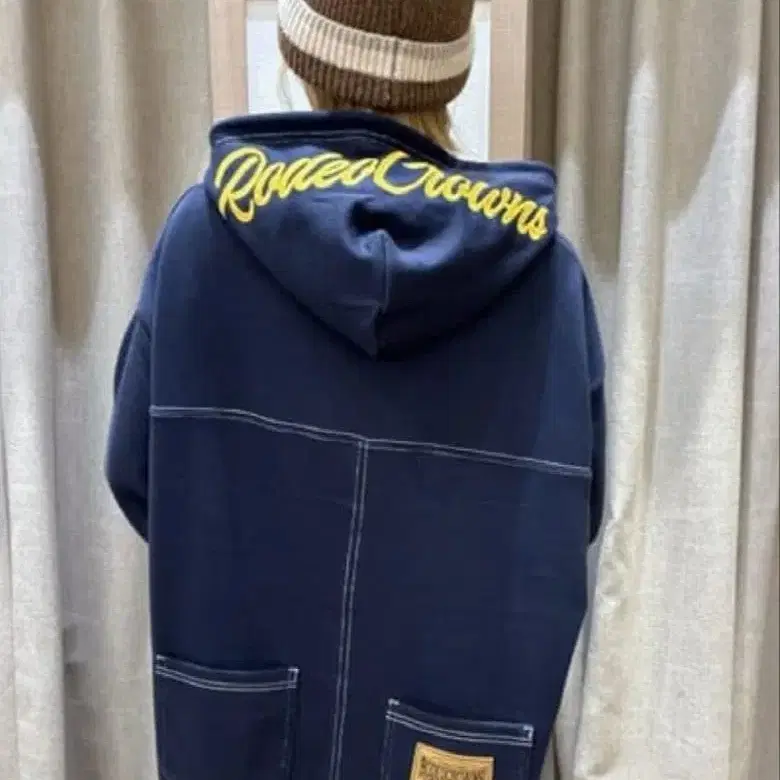 로데오 크라운 RCS 컬러 스티치 후드티 원피스 네이비