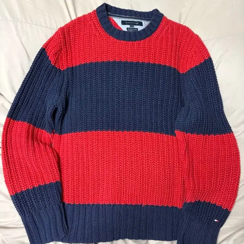 TOMMY HILFIGER 두꺼운 원단 니트 L 보더 프리미엄 코튼