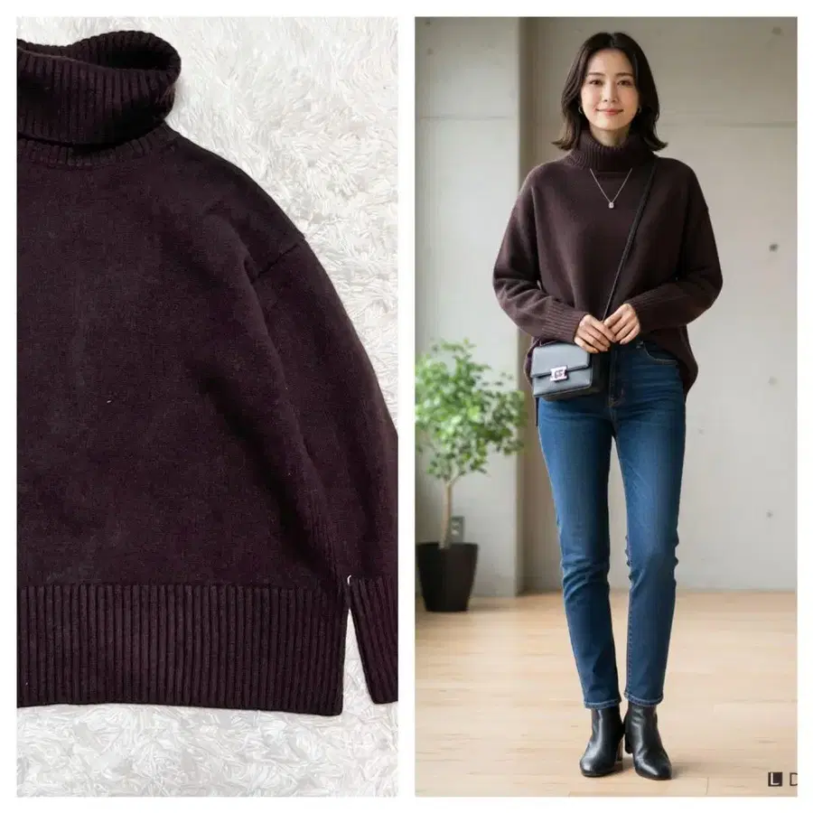 드로와 로트레아몽 터틀넥 니트 브라운 캐시미어 혼방 ✳️ 사진 1, 12는 본인이 제작한 AI 착용 이미지입니다. 게재된 착용 이미지는 상품의 사이즈감과 코디네이트의 이미지를 알기 쉽게 전달하기 위해 AI 생성한 이미지입니다. 이미지는 참고용으로 부탁드립니다. 인기 브랜드 [드로와 로트레아몽 (Droite lautreamont)]의 터틀넥 니트입니다. 드롭 숄더와 넉넉한 가슴 너비로, 입는 것만으로도 올해 유행하는 내추럴한 실루엣이 완성됩니다. 부드럽고 포근한 촉감으로, 까슬거림이 적어 데일리로 사용하기 좋습니다. 울 95%에 캐시미어 5%를 고급스럽게 배합했습니다. 캐시미어가 함유되어 일반 울 100%보다 촉감이 매끄럽고, 포근하고 가벼운 착용감이 특징입니다. ✳️ 자택 보관 중고품임을 이해하신 후 구매 부탁드립니다. 색상 - 차분한 다크 브라운 계열 (어떤 하의와도 잘 어울리며, 성숙하고 고급스러운 인상을 줍니다.) 소재 - 모 95%, 캐시미어 5% 사이즈 - 2 ✳️ 평평하게 놓은 개인 측정 치수 총길이 (목 부분 접은 상태) 약 72 기장 약 62 가슴 너비 약 54 어깨 너비 약 53 소매 길이 약 47 #Droitelautreamont #드로와로트레아몽 #로트레아몽 #터틀니트 #하이넥 #브라운니트 #리브니트 #성숙캐주얼