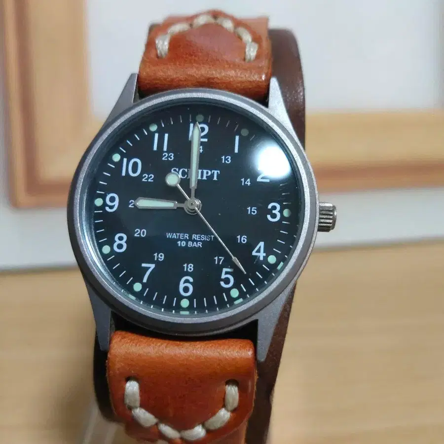 script 스크립트 리얼 가죽 남성용 쿼츠 시계 배터리 포함 작동품