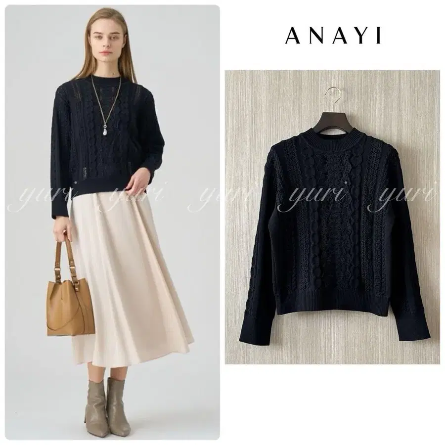케이블과 아이렛의 짜임이 예쁘게 보이는 미들 게이지 니트입니다.