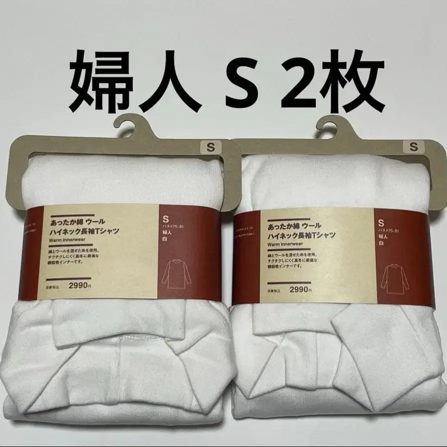 무인양품 따뜻한 면 울 하이넥 긴팔 T셔츠 여성 화이트 S 사이즈 2개