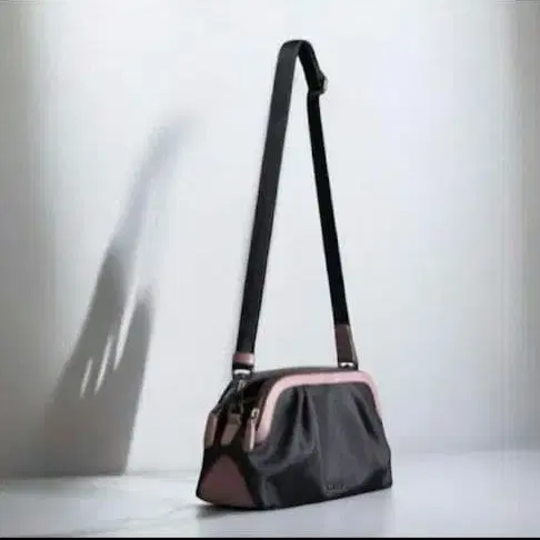 블랙과 퍼플의 숄더백 나일론과 인조 가죽의 백 수납 포켓 다수