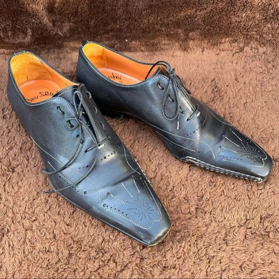 산토니 블랙 가죽 메쉬 드레스 슈즈