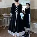 5 백 새틴 리본 배색 레이스 플레어 원피스