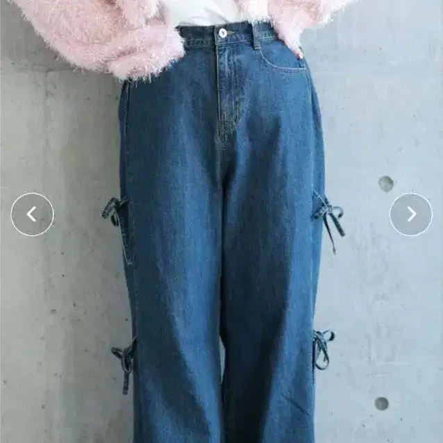미사용! 사이드 리본 포함 와이드 데님 팬츠