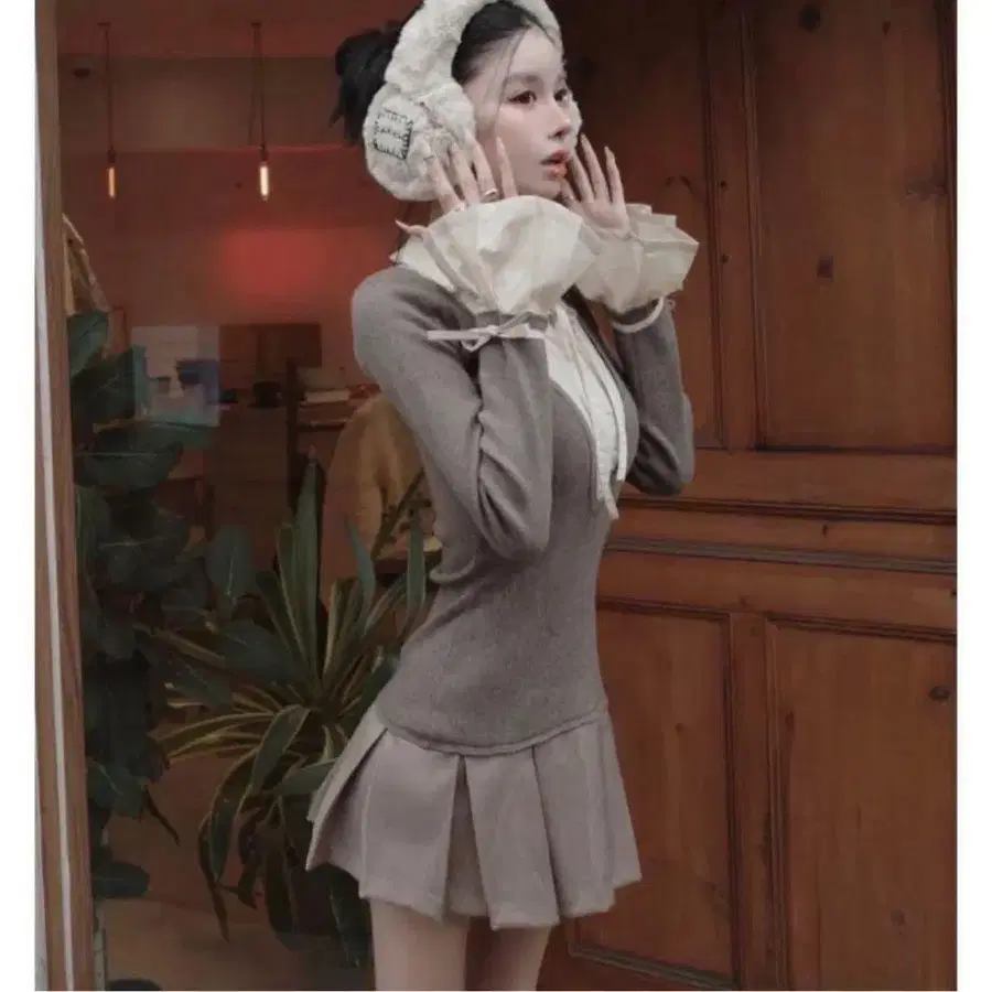셔츠 도킹 플리츠 미니 원피스 MOC
