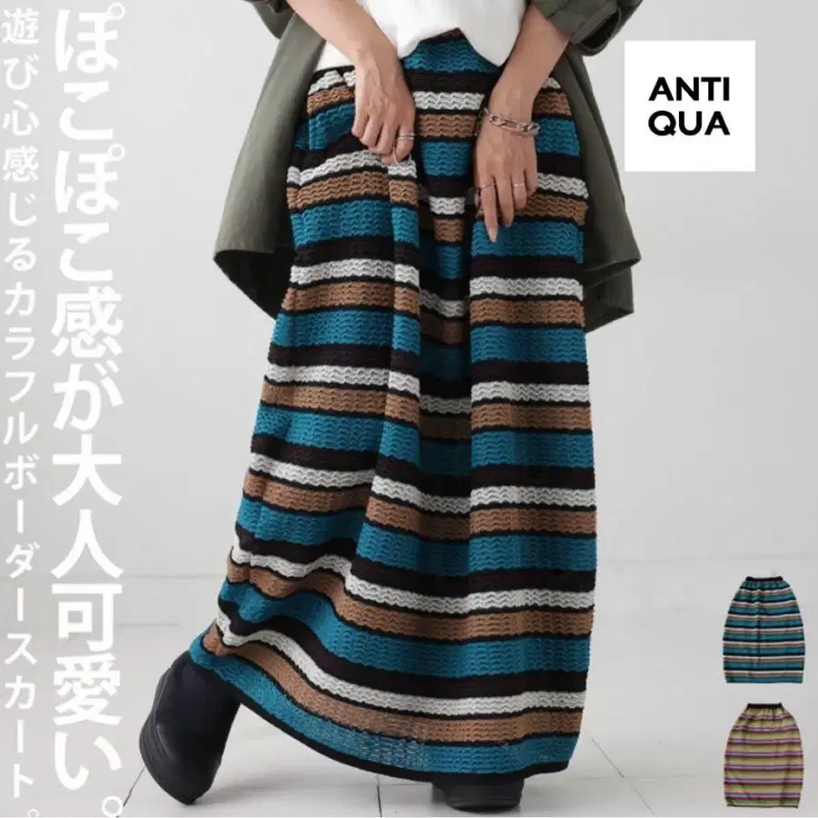 ◎ 새상품 미사용 택 포함 안티카 보더 무늬 코쿤 맥시 롱 스커트