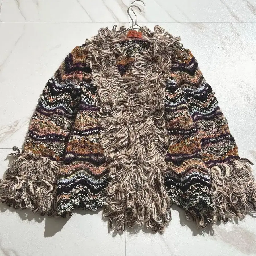 새상품급 미쏘니 프린지 니트 아우터 모헤어 지그재그 멀티 컬러 40