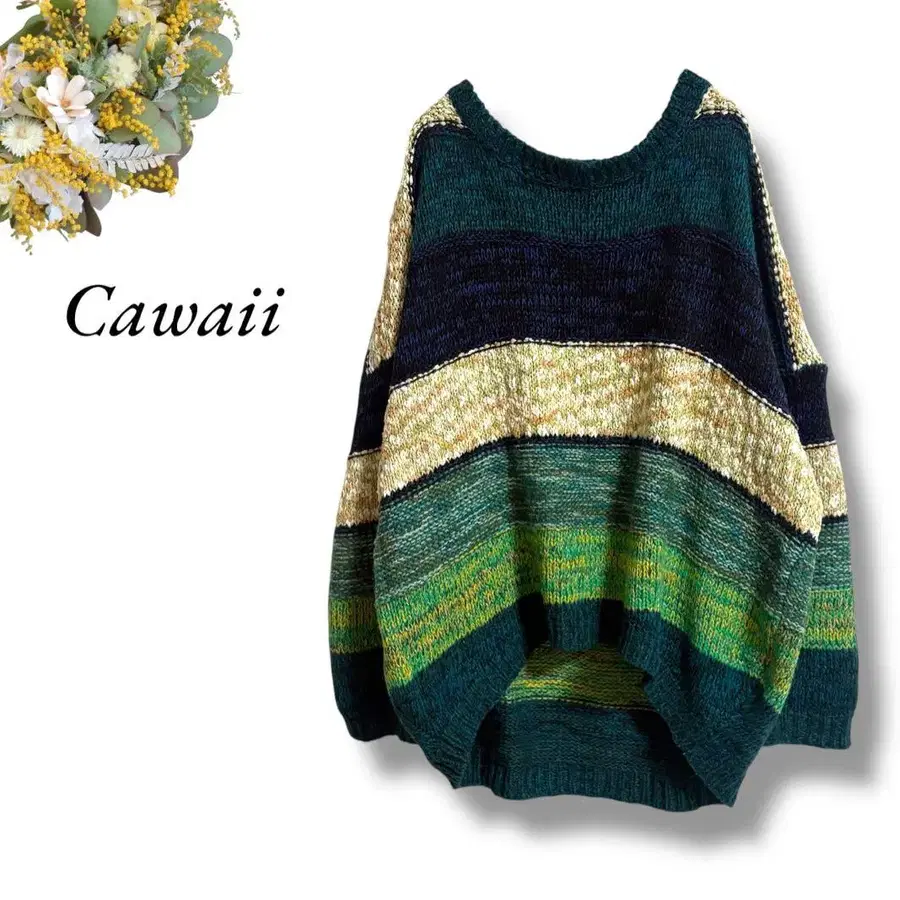 Cawaii 풀오버 니트 멀티 컬러 그린 오버 사이즈 4459