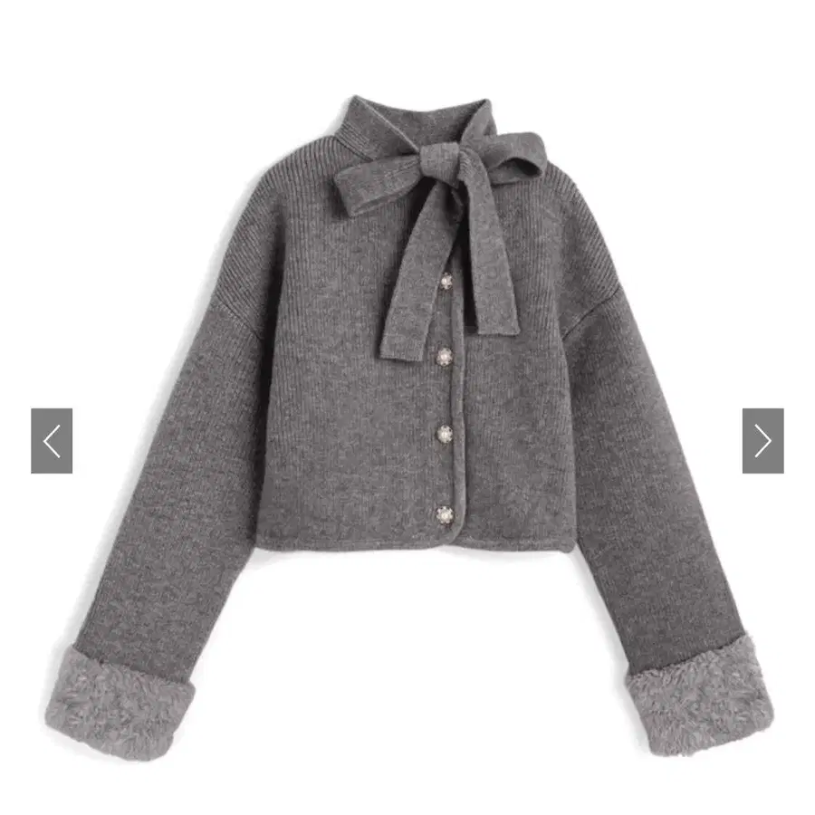 GRL 리본 펄 버튼 퍼 니트 가디건[lt150] 그레이