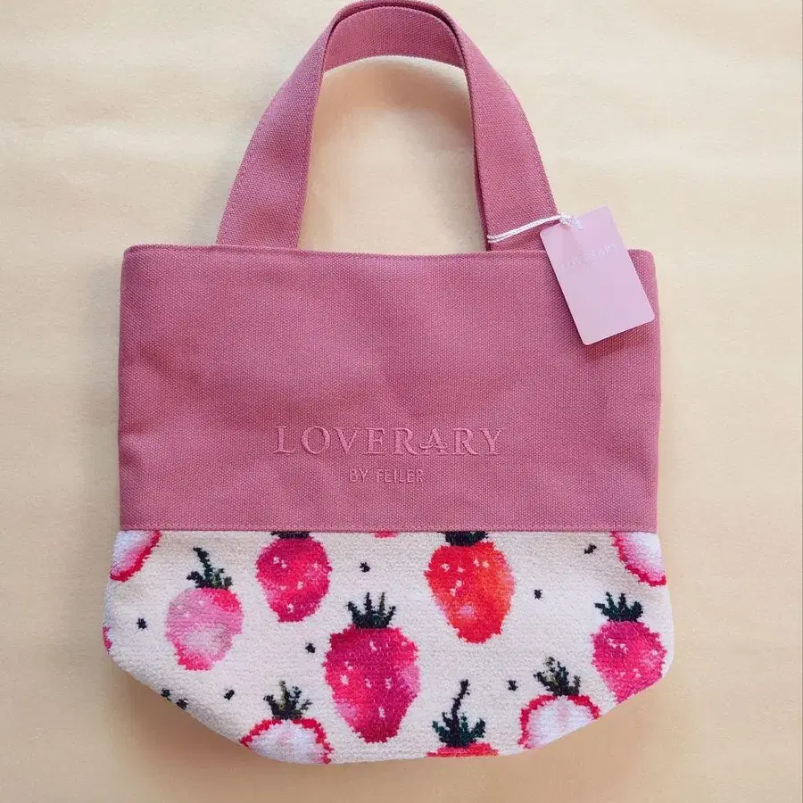 FEILER 러브러리 스트로베리 도트 토트백 아이보리 x 핑크