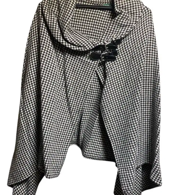 랄프 로렌 하운드 투스 패턴 케이프 코트