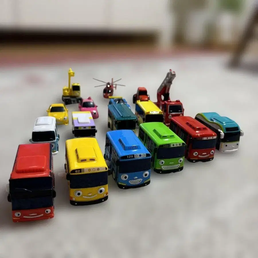 한국에서 인기 있는 애니메이션 [꼬마버스 타요]의 미니카 완구 17대 세트입니다.