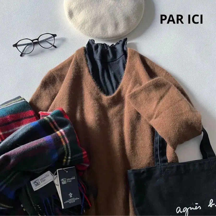 b36* 팰리시 포근포근 V넥 라쿤 니트 원피스