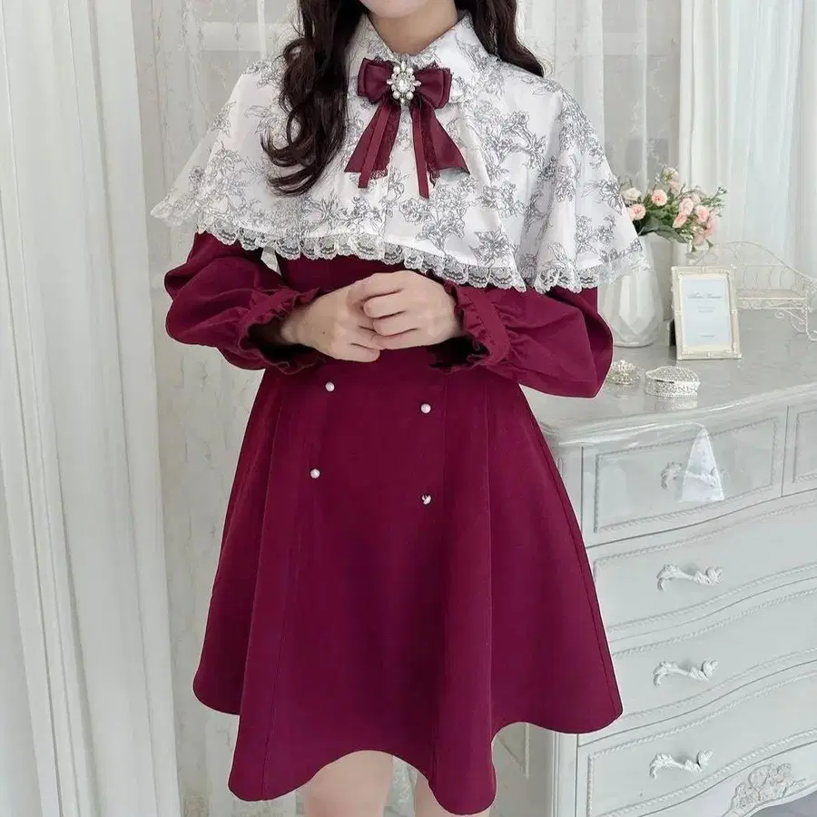 ROJITA 로지타 세퍼레이트 케이프 롱 슬리브 원피스 보르도