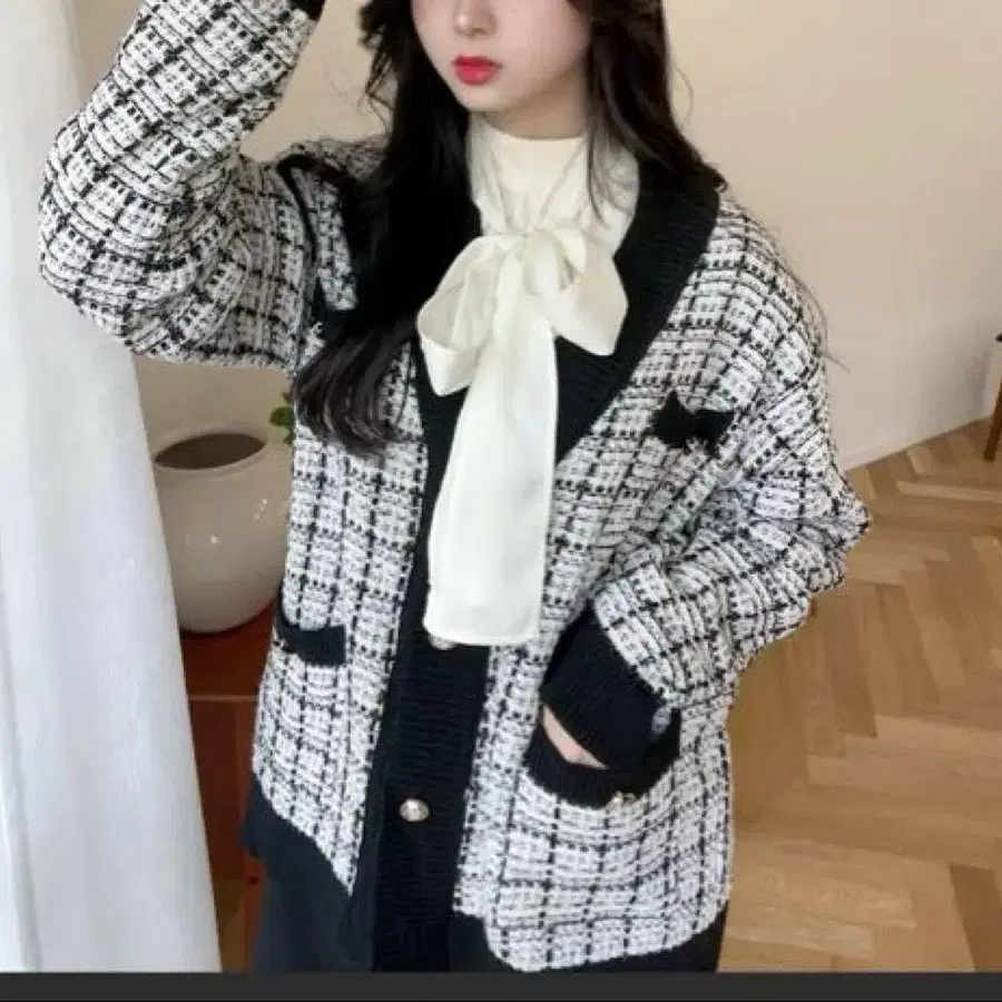 티티앤코 트위드 가디건 블랙