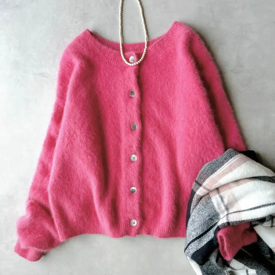라운지 드레스 FUR 캐시미어 2WAY 니트 가디건 복슬복슬 핑크