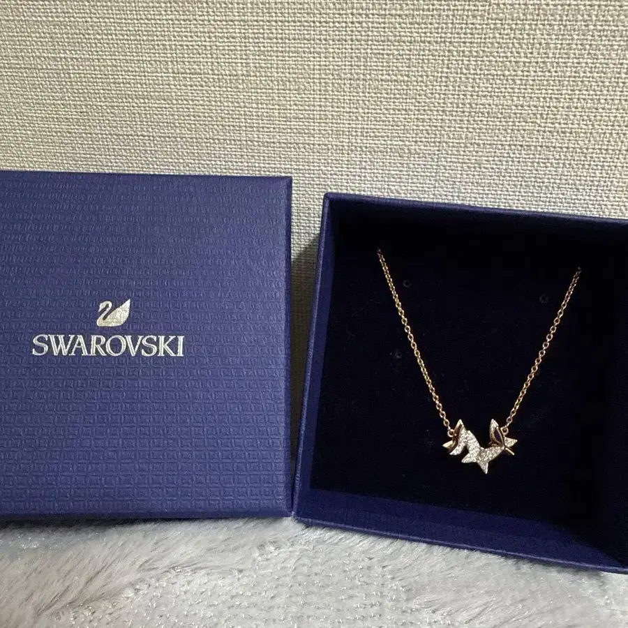 Swarovski 나비 모티브 목걸이 핑크 골드