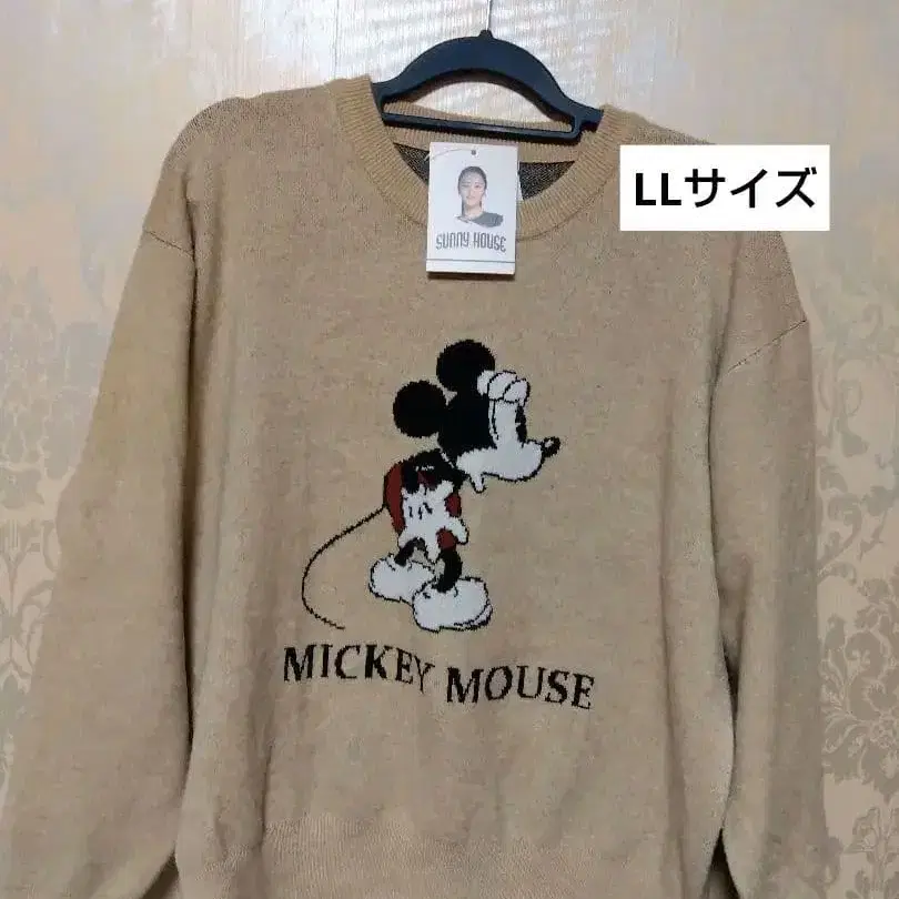 택 포함 새상품 SUNNY HOUSE 미키마우스 니트 LL 베이지