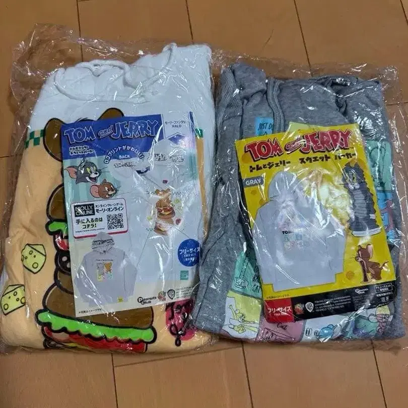 톰과 제리 후드 맨투맨 그레이와 화이트 프리 사이즈 2종