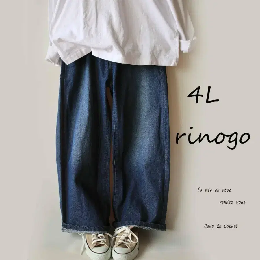 새상품 할인 4L 와이드 스트레이트 데님 팬츠 네이비 캐주얼 빅 사이즈
