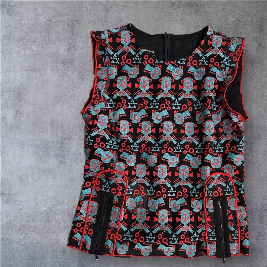 새상품급 엠포리오 아르마니 38 슬리브리스 올 패턴 자수 상의