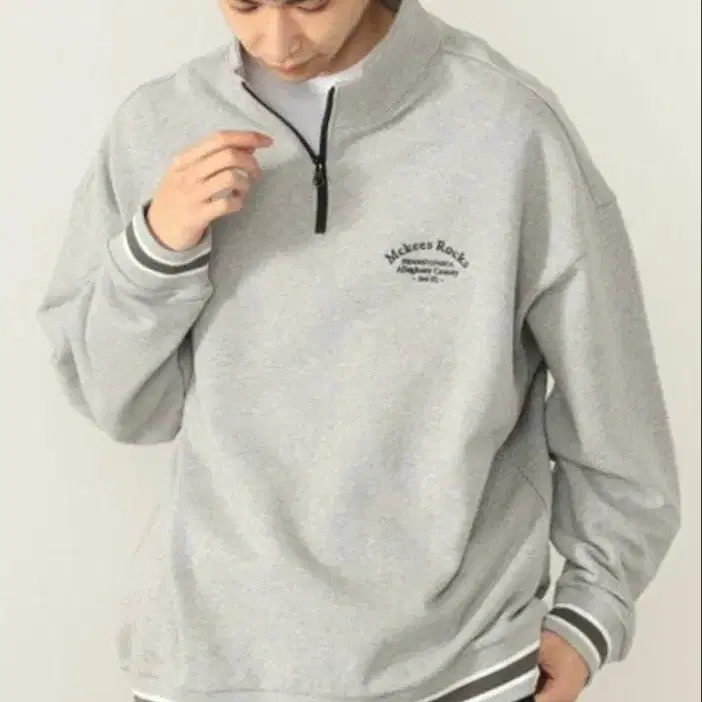 BEAMS 그레이 하프 지퍼 트레이닝복