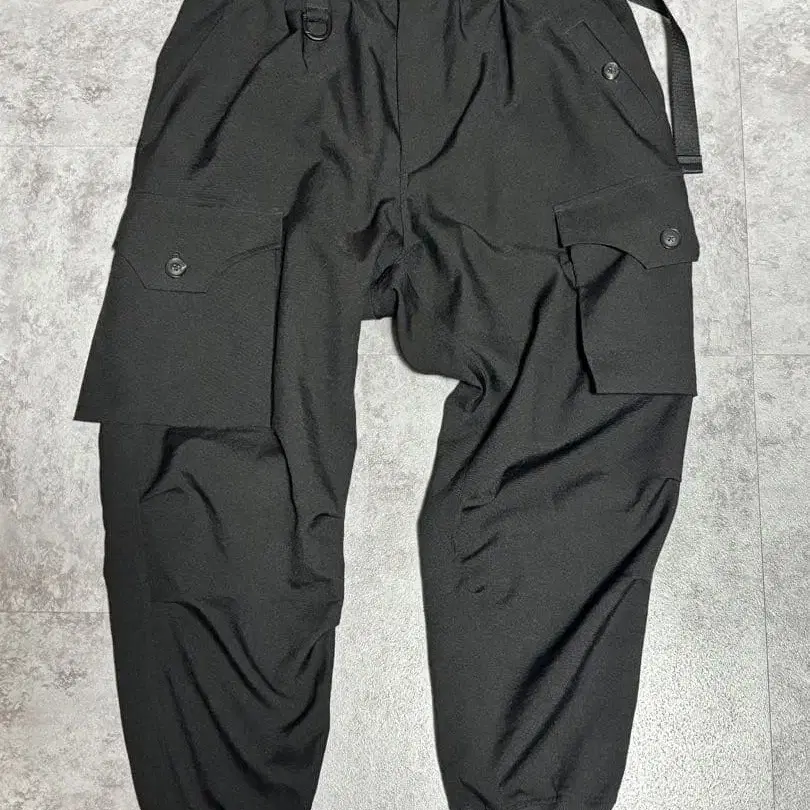 사양: 허리 신축 + 일체형 버클 포함 나일론 벨트, 프론트 핸드 포켓 x 2, 사이드 카고 포켓 (버튼 개폐) x 2, 힙 포켓 (버튼 개폐) x 2