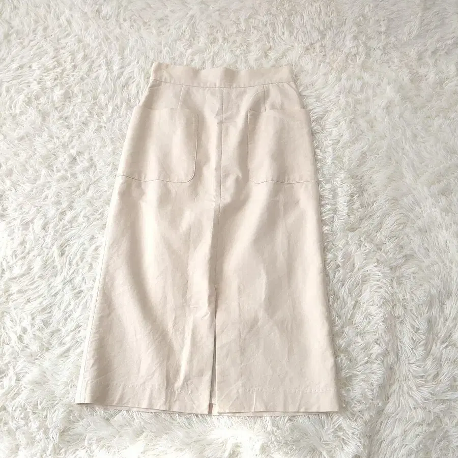 ☑ 상품: 베이지 색상의 타이트 스커트, 앞면에 포켓 부착, 사이즈 36.