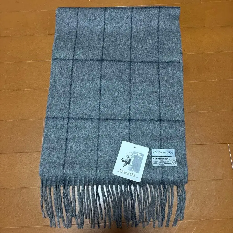 미사용 새상품 캐시미어 100% 그레이 체크 머플러
